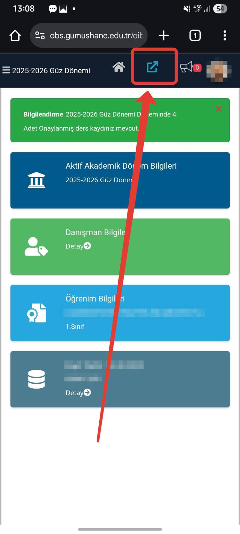 Öğrenci ve akademisyenlerde buton aynı yerde bulunmaktadır.